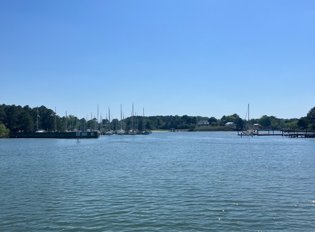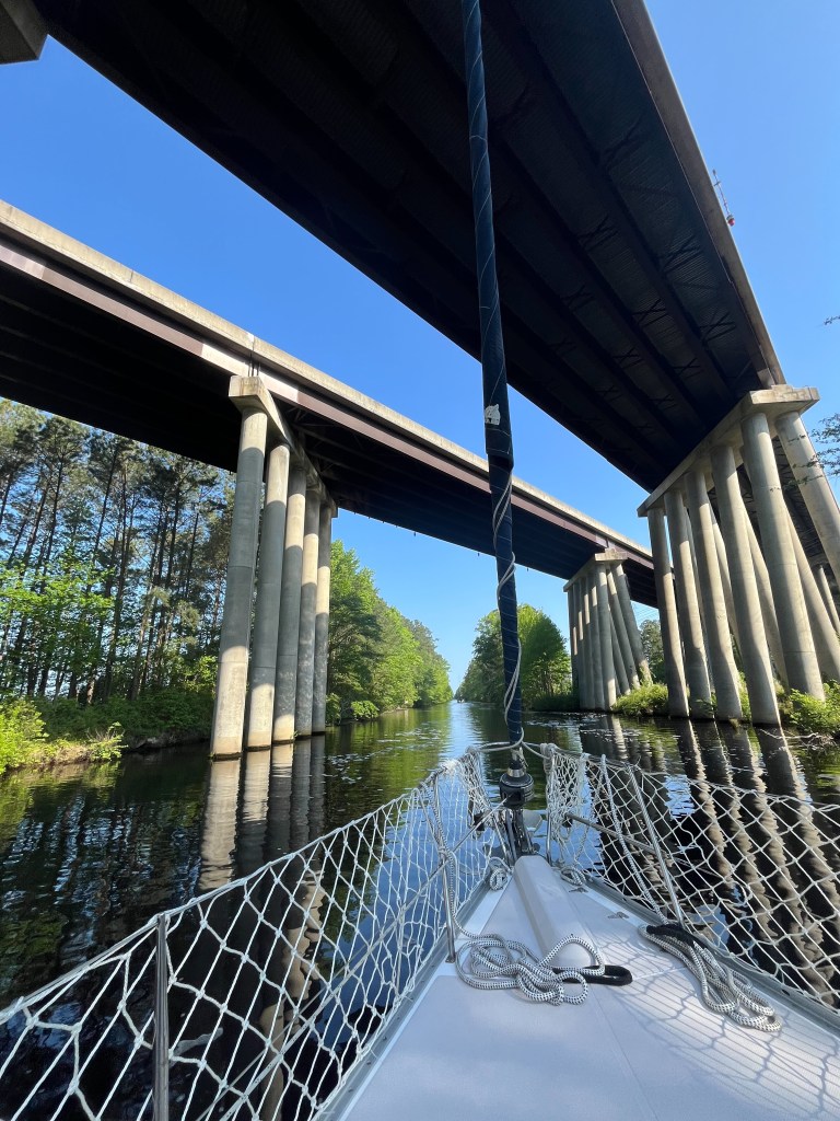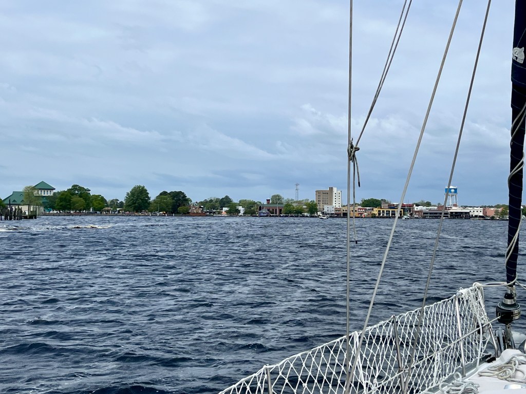 From the Albemarle Sound, we entered into the Pasquotank River. By that point the wind was on our stern, which helped push us along and minimized the boat’s motion.