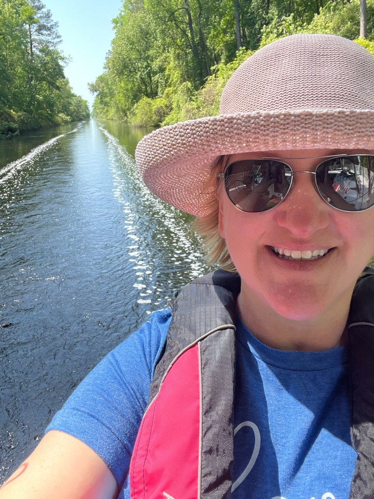 On our way south, we stopped at the Dismal Swamp Canal Welcome Center to purchase our commemorative tees and hats and snap a couple of photos of the water. Hard to believe we had just motored through the area two days prior.